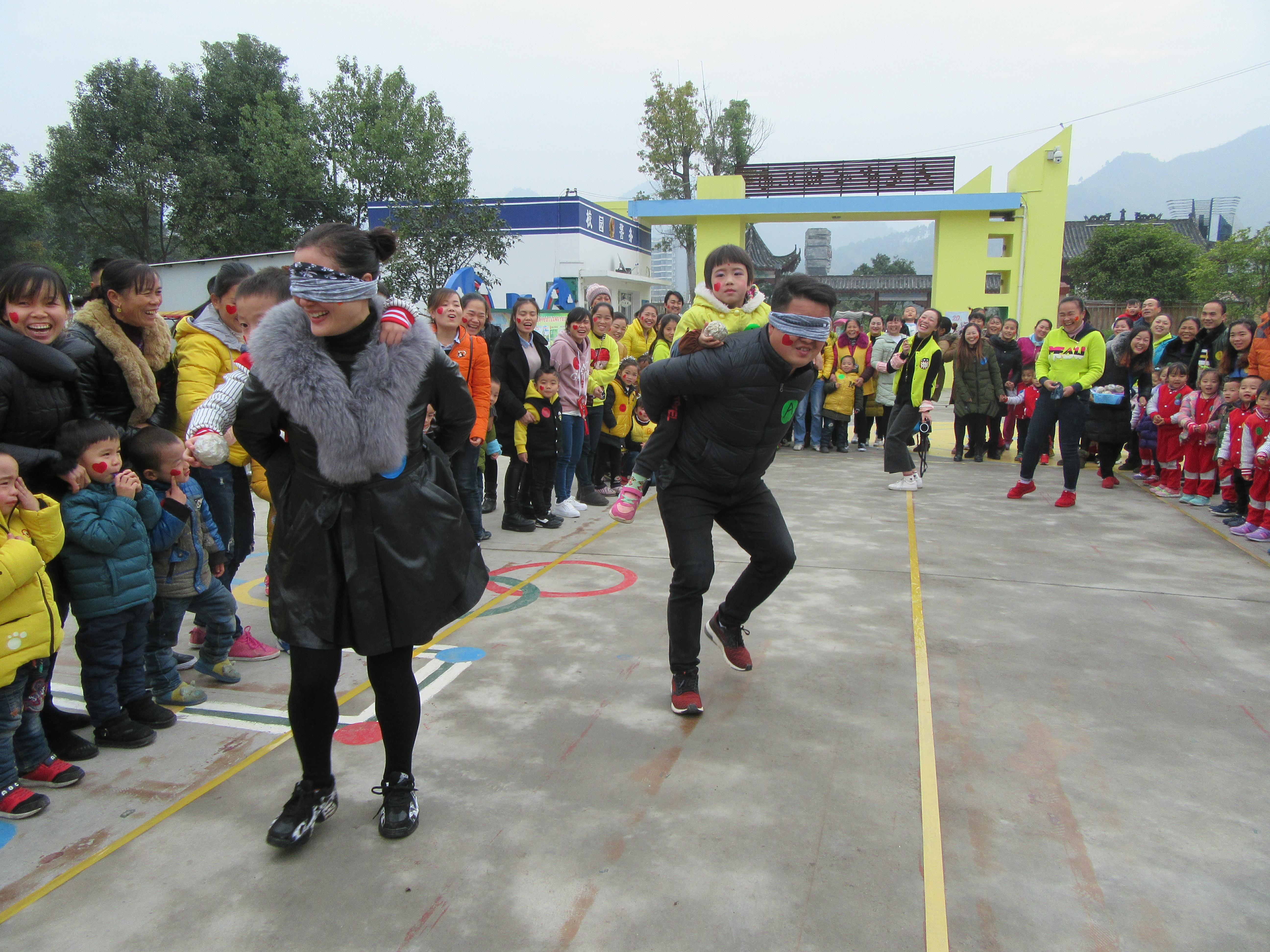 加油、加油!”大龙镇中心幼儿园里一派热火朝天的景象,原来是正在举办以“快乐总动员、幸福你我他”为主题的冬季亲子运动会。