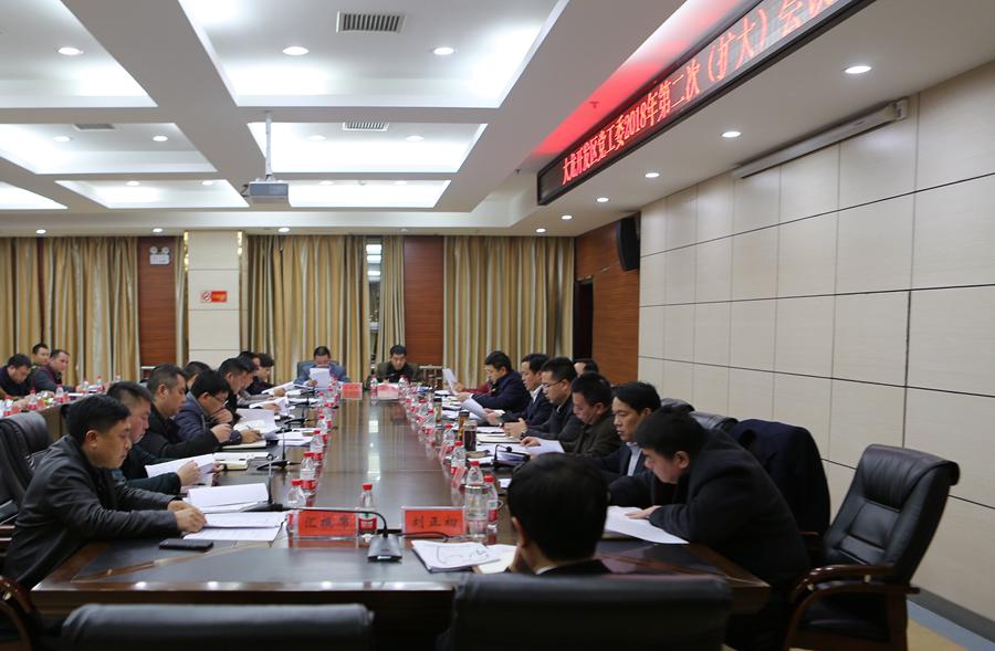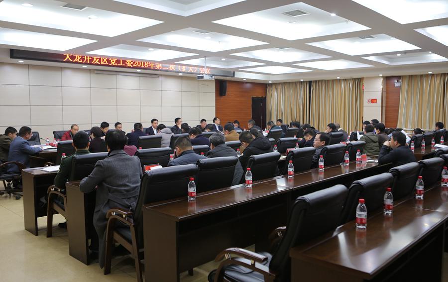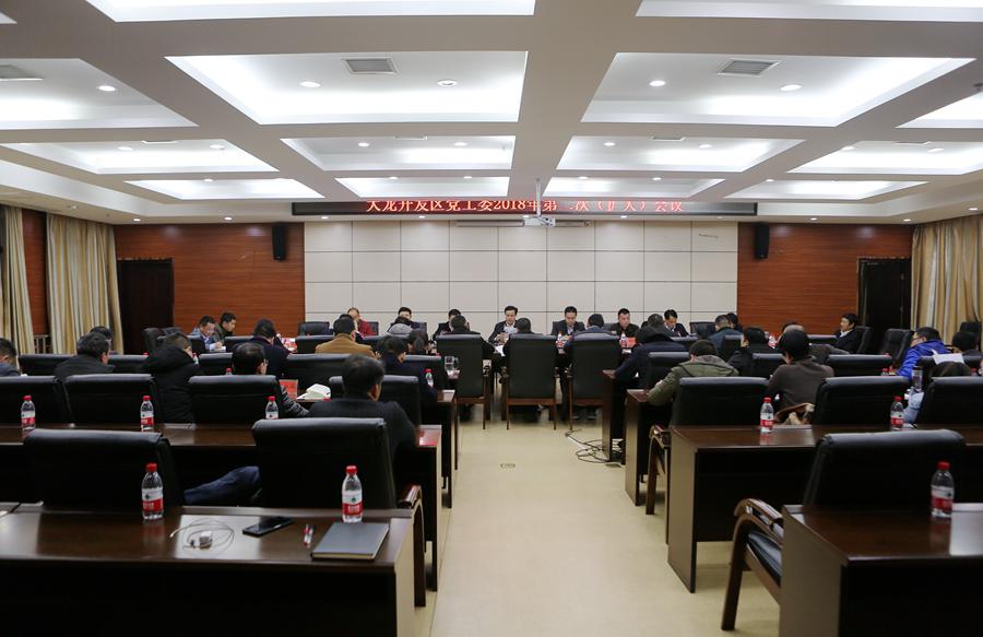 1月12日晚,大龙开发区在为民服务中心五楼会议室召开2018年第二次党工委(扩大)会议,开发区领导江旭、戴刚、秦会刚、姚源龙、王开元、田进、陶毅、石昌勇,大龙检察室主任覃志勇,管委会副调研员刘正初、李朝强出席会议。会议由党工委副书记、管委会主任江旭主持。