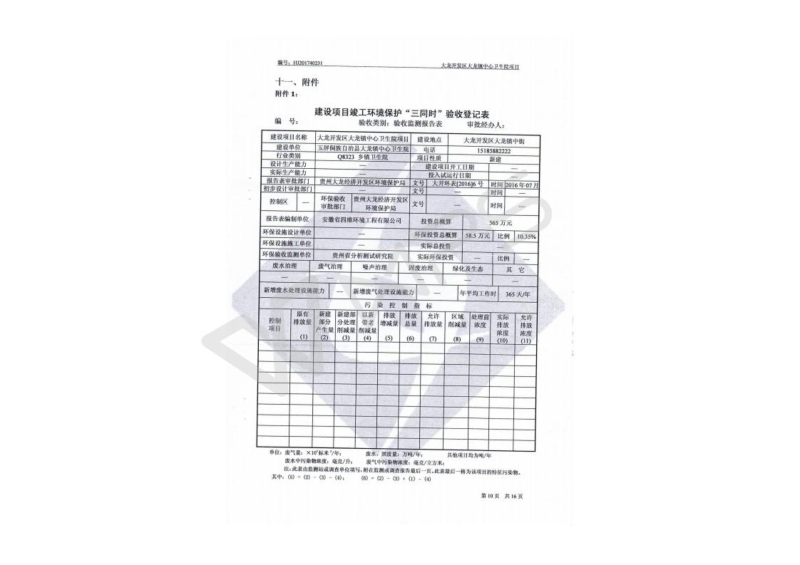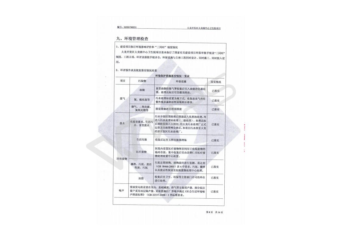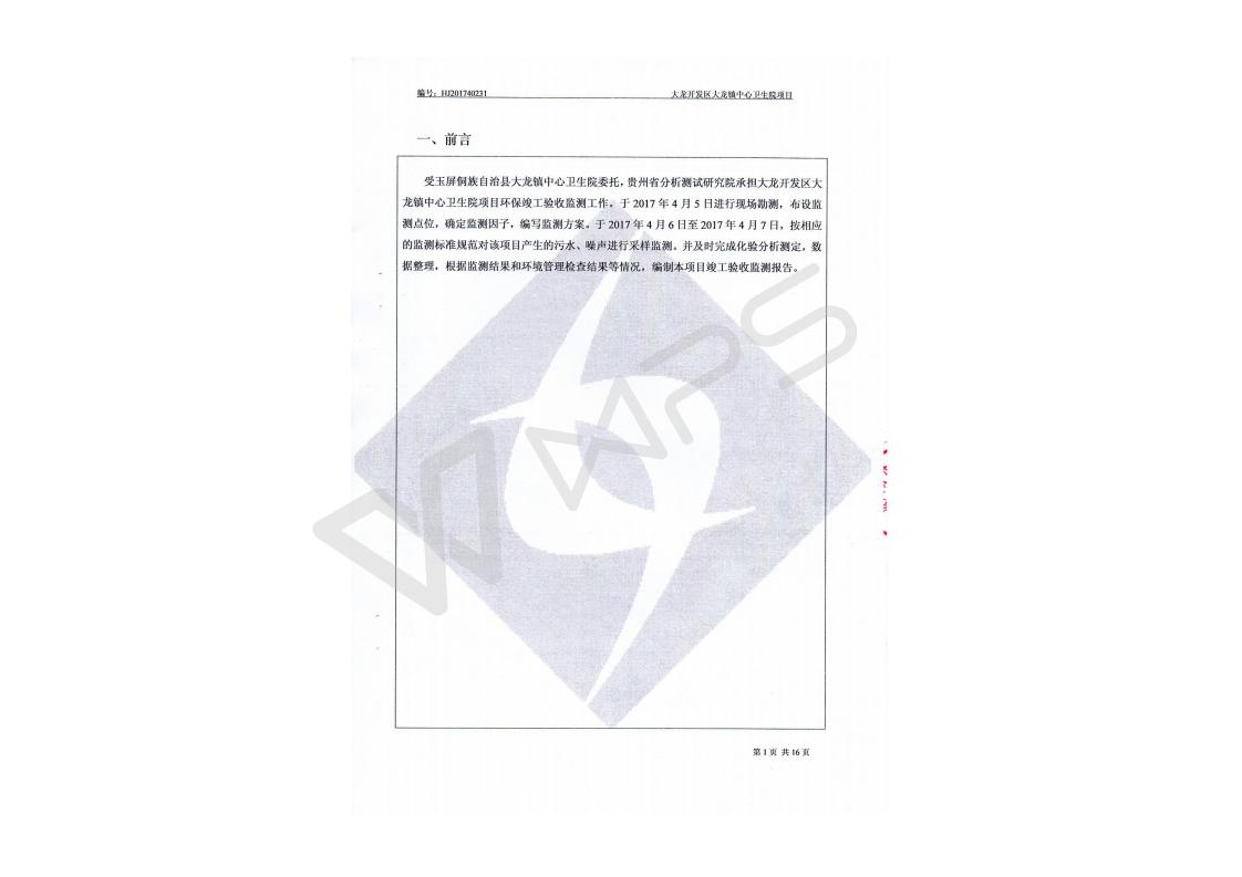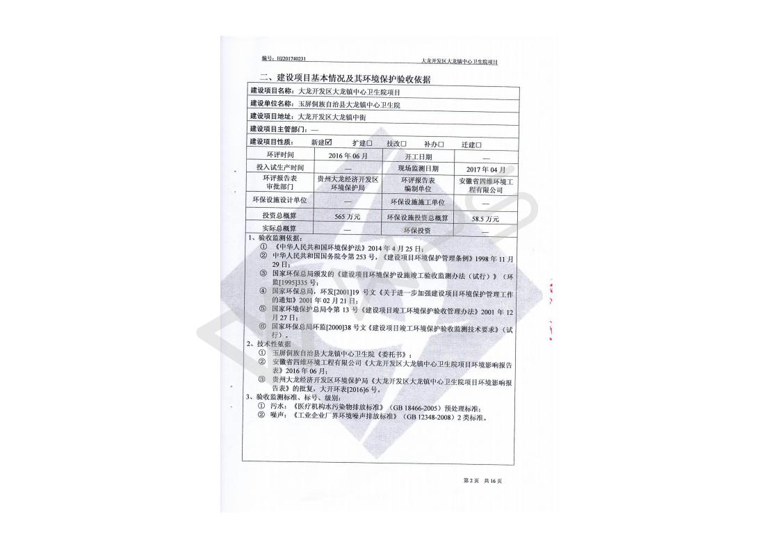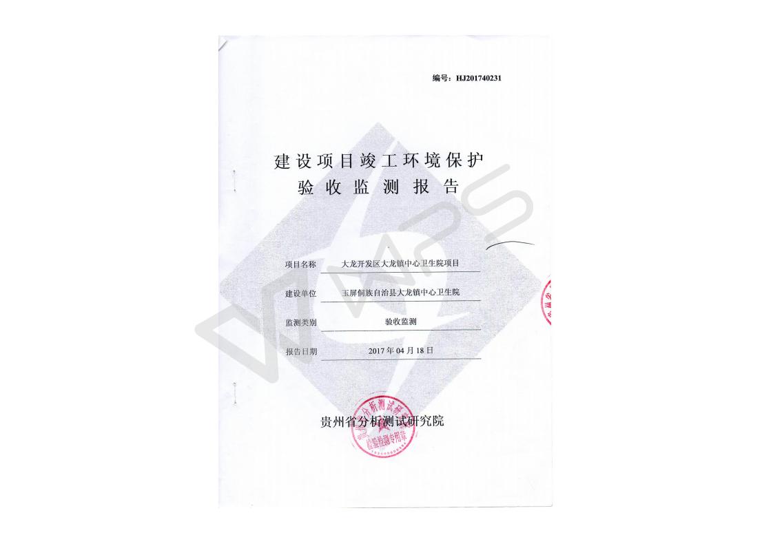 关于大龙镇大龙中心卫生院项目竣工环境保护验收监测报告的公示