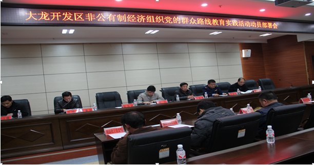 3月7日,大龙开发区非公有制经济组织党的群众路线教育实践活动动员部署会在开发区一楼会议室召开。非公工委全体成员,各非公企业支部全体党员、预备党员和入党积极分子共100余人参加会议。开发区党工委党的群众路线教育实践活动第四督导组组长聂贤刚,开发区党建办副主任龙兵代表开发区组织人事部部长龙战强出席了会议。